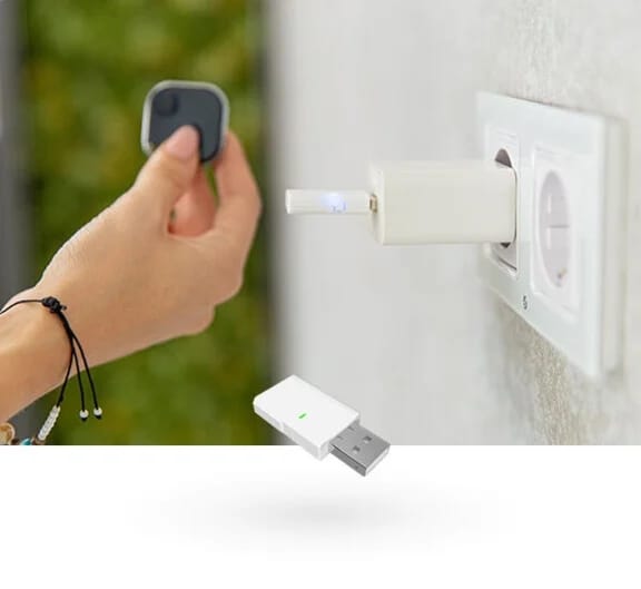 A dongle which works as a bridge between your Shelly BLU devices and the wider Shelly ecosystem. It receives Bluetooth signals and sends them to the cloud or locally to another non-bluetooth device.