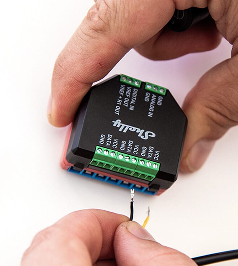 Shelly Plus Add-on is a galvanically isolated sensor interface for all Shelly Plus relays. Use it to measure temperature and humidity using its 1-Wire terminals, or connect various analog and digital sensors for complex automation and higher efficiency.