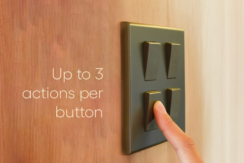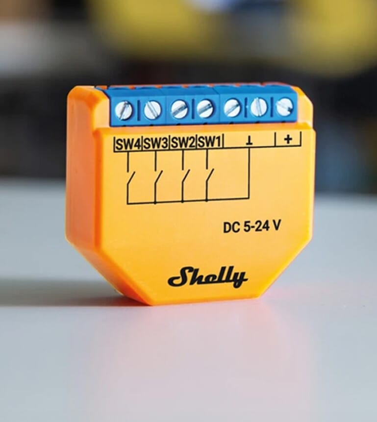 Shelly Plus i4 is perfect for Shelly Wall Switch for Smart Relays – a 4 button switch. Each button can activate up to 4 different actions. That means that only one 4 button switch would allow as much as 16 scenes trigger and execution!