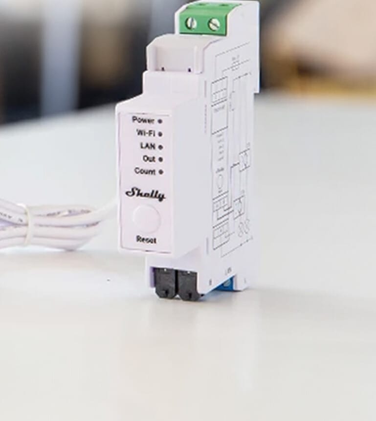 Shelly Pro EM-50 is a DIN rail mountable two-channel, single-phase energy meter. It has an integrated switch with dry contacts for contactor control.